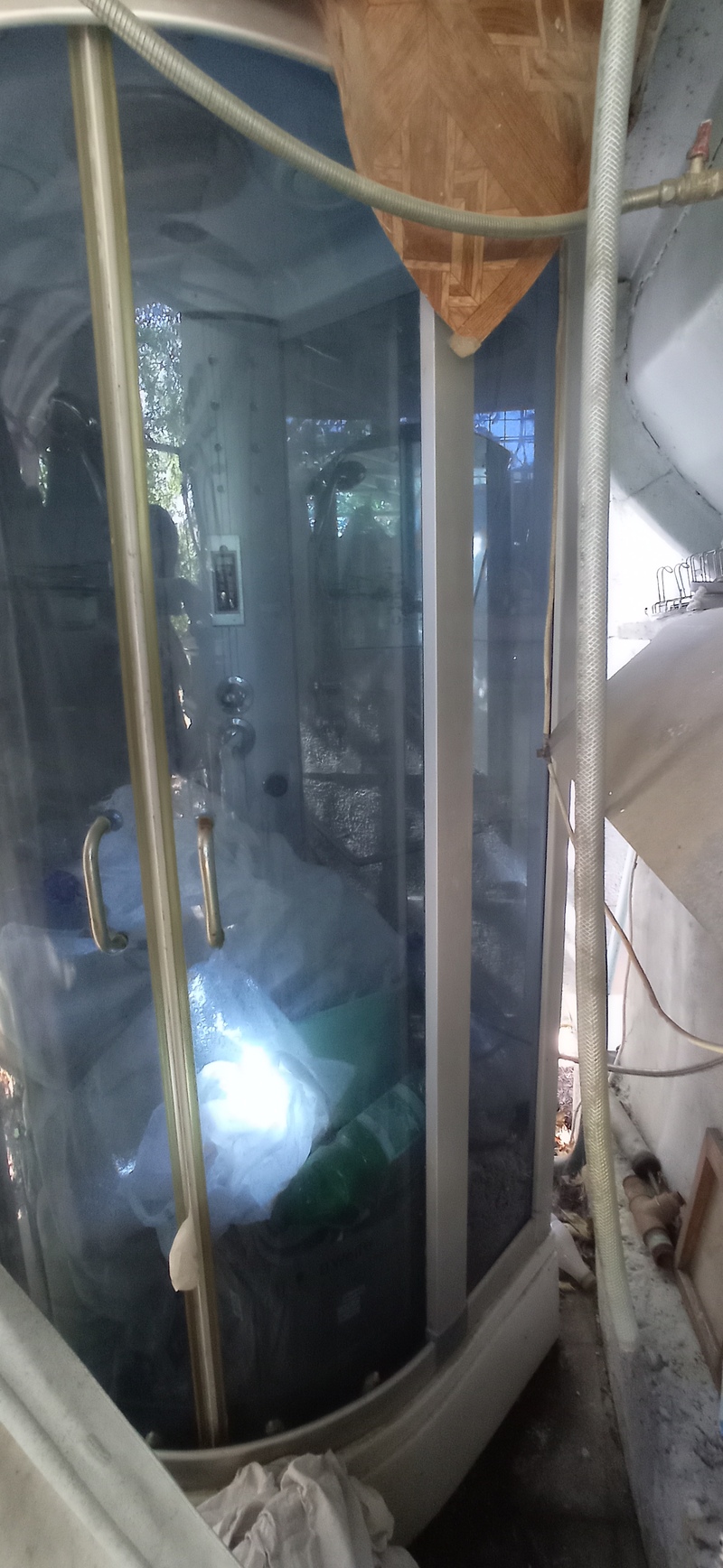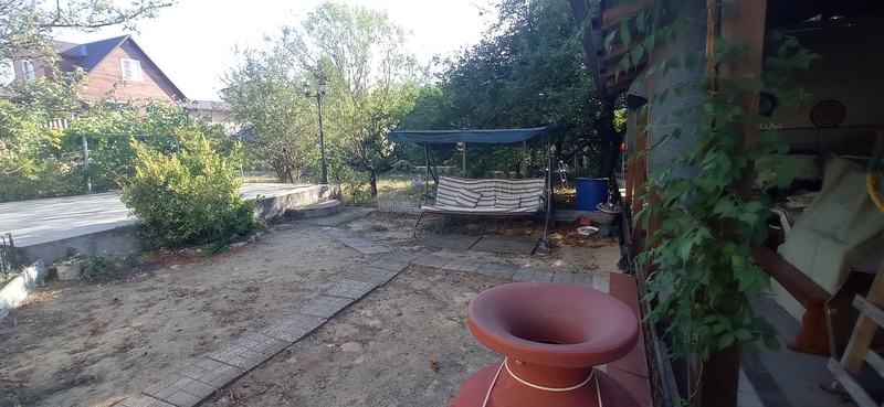 Участок 8 соток. Бетонный забор с сеткой по всему периметру. На участке: двухэтажный домик 60 кв.м. Беседка. Кунг переоборудован в кухню. Морской контейнер - жилое помещение. Ёмкость 7 куб. Складское помещение с инструментами.